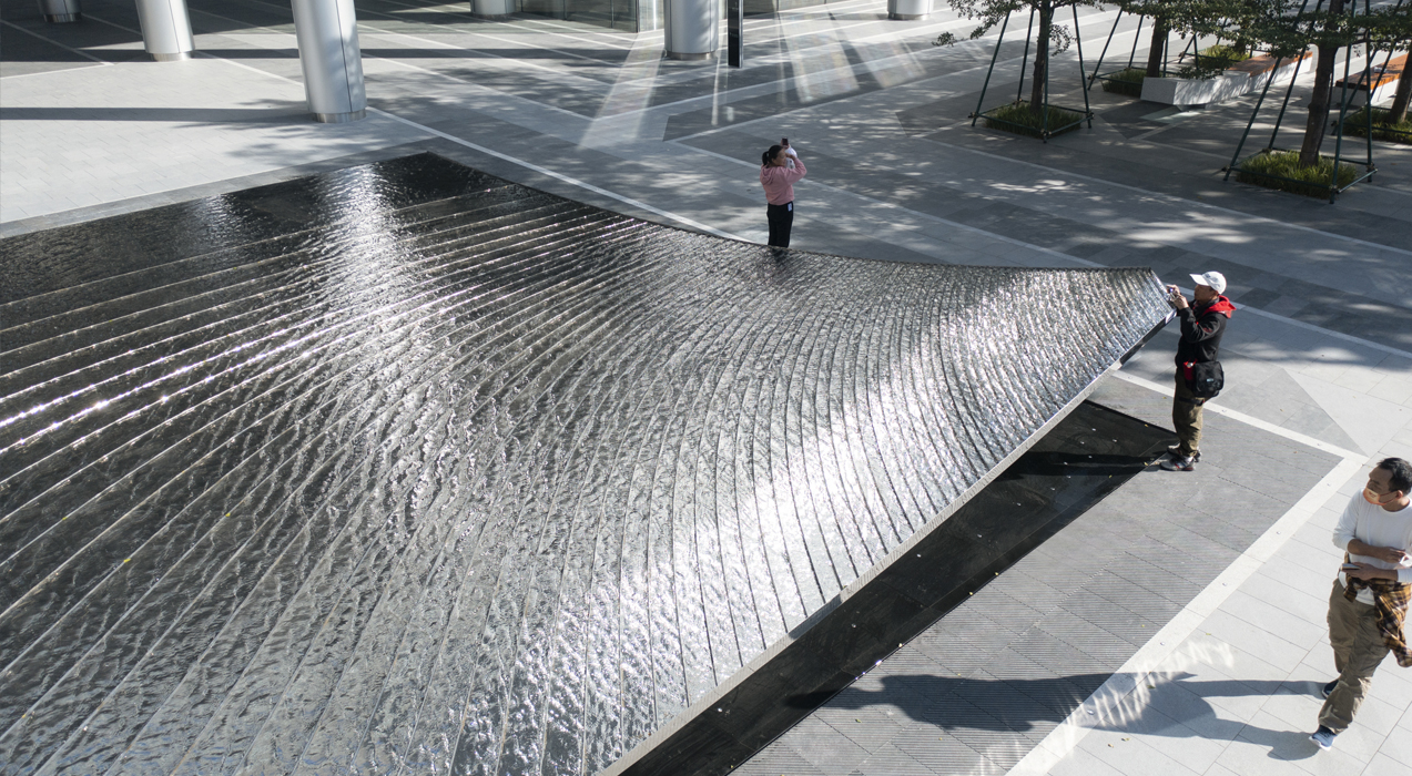 项目的景观规划设计由SWA主笔,包含了此水景艺术品的雕塑概念方案。素水设计与UAP合作,对水景艺术品进行了方案深化设计和制作安装。