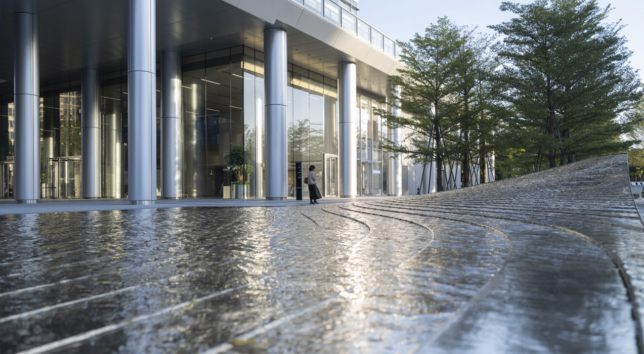 因此素水+UAP以一丝不苟的态度,完成了这个以毫米定精度的水景艺术品。]