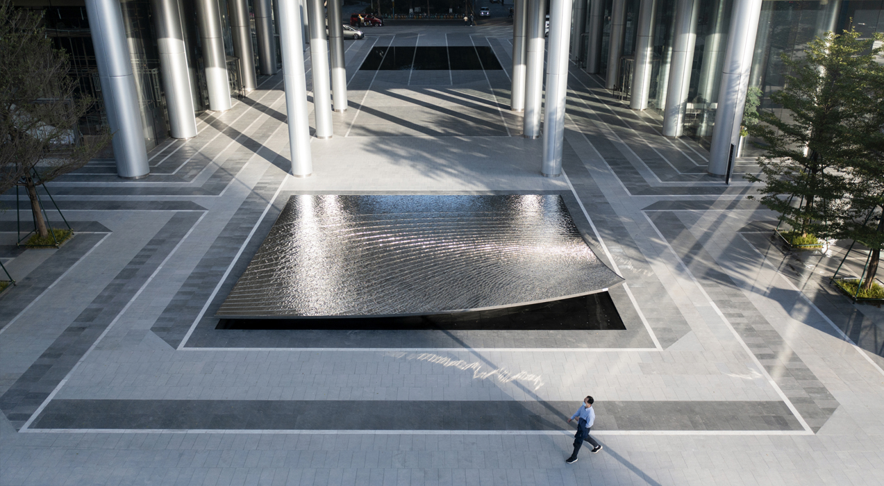 项目的景观规划设计由SWA主笔,包含了此水景艺术品的雕塑概念方案。素水设计与UAP合作,对水景艺术品进行了方案深化设计和制作安装。