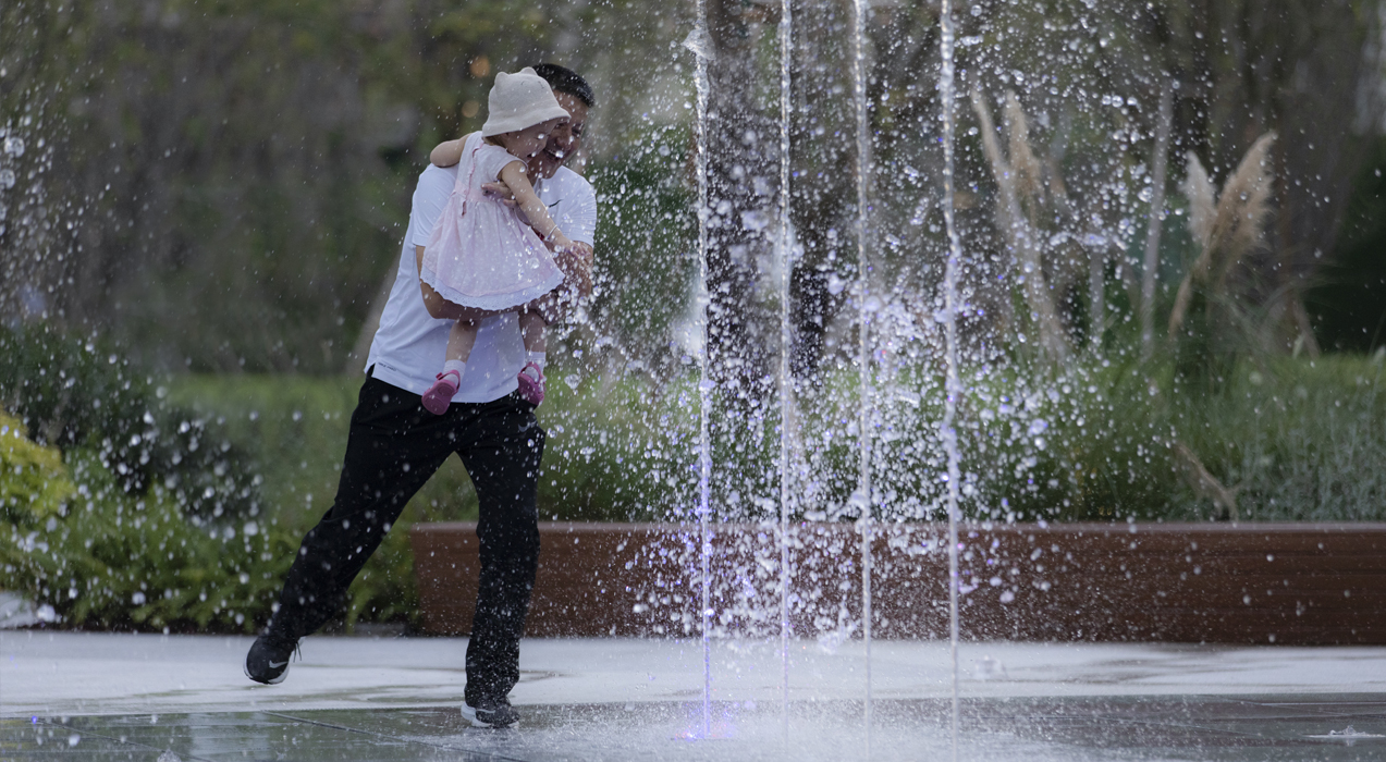 水可以吸引人不自觉地靠近,天然就具有互动性和可玩性。水景具有的互动性和游戏性,让小朋友不再是唯一的受众,大朋友也可以一起参与。直喷笔直动感的水柱,是支撑起整个水景的“中流砥柱”。喇叭泉多变的水效,是一场精彩的水秀必不可少的“特技演员”。轻盈的水帘,则是灯光水秀的“压轴戏”。